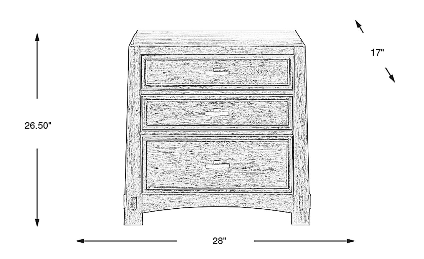 A soothing, relaxing feeling flows throughout the Keaton nightstand, carried by strong lines and meticulous, eye-catching details. Rendered in pine veneers and finished in earthy taupe, this transitional piece is rich with mission-style accents. The tapered top and flared base create an unmistakable silhouette. At the base of this piece, pronounced joinery adds another touch of authentic craftsman flair. Black metal bar pull hardware adds contrast to each of the three drawers. For a functional final touch, there's a USB charger hidden on the back.