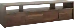 The Kedleston brown console accommodates up to an 86-inch TV weighing 135 pounds or less. Four drawers feature metal runners and safety stops for easy-access storage. Divided shelving holds audio and video equipment adding bonus space for storage and display. Customer assembly is required.