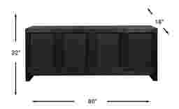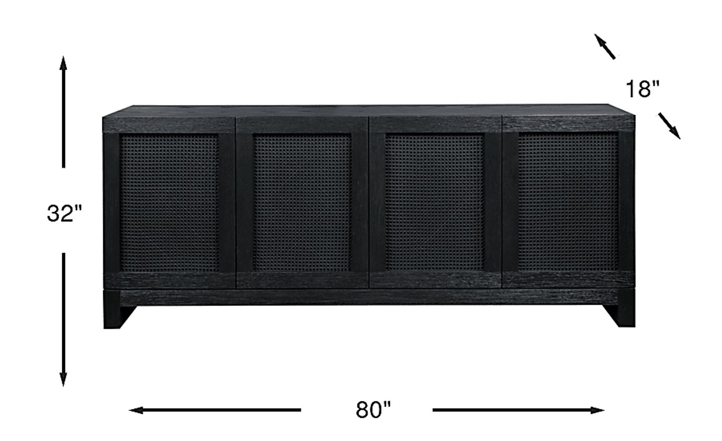 With its rich textures and beautifully balanced proportions, the Keegan credenza brings a strong sense of character and quiet refinement to your home. Textural woven cane panels add dimension and contrast, enhancing this credenza's richly finished frame. The deep, dark black tone adds depth and sophistication with a modern edge. With four doors and generous interior storage, this credenza offers a stylish solution for dining rooms, living spaces or anywhere you're in need of extra organization and storage.