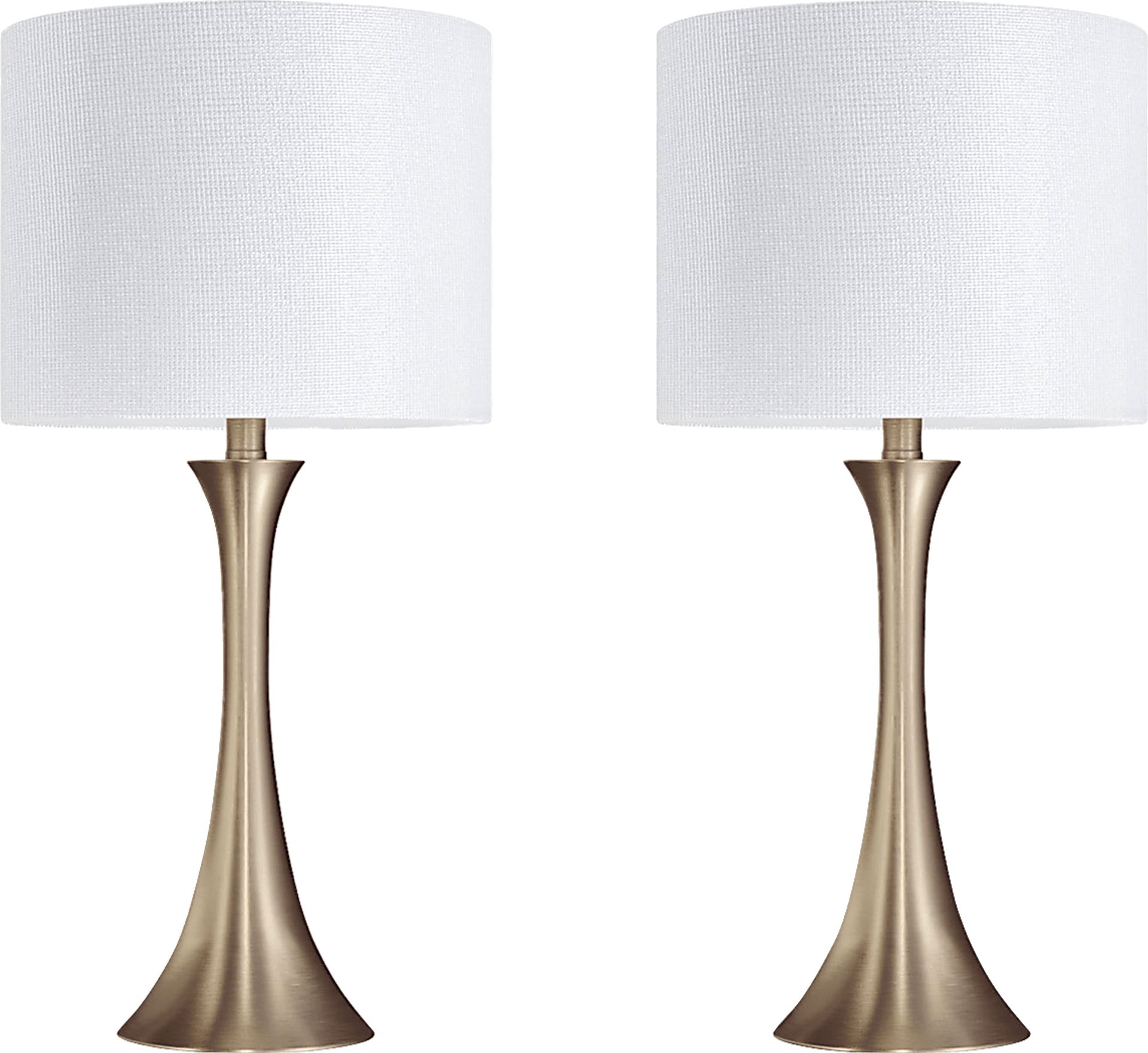 Add sleek modern style to your space with the Keely Alley lamp, set of 2, which feature a beautiful round base that elegantly curves up into a lovely hourglass body in a gold finish. Each lamp is topped by a gold-plated finial and a drum shade wrapped in off-white sparkly linen with gold accent threads, creating a lamp that is versatile yet stylish. Whether resting on your nightstands, set on a side table in the den, or tucked into your favorite reading nook, this lamp is a chic addition to any aesthetic. Partial assembly may be required.