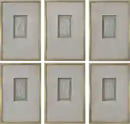 The vertical, rectangular orientation of these pieces allows for versatile styling. For a structured, gallery-inspired look, a symmetrical grid (3x2 or 2x3) is most effective. Alternatively, for a more modern and expansive feel, you can hang all six in a continuous horizontal line to elongate a long hallway or anchor a large sectional sofa. Because the architectural subjects are distinct yet stylistically unified, they maintain a cohesive narrative regardless of your chosen configuration.