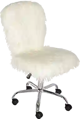 Add fun style and function to a desk or table with the Kellow armless office chair. The chair features faux fur upholstery on the seat and back and is finished with a chrome base. Easy roll castors allow you to easily move around your workspace. The gas lift adjustable seat allows the chair to work with a variety of table heights. Customer assembly is required.
