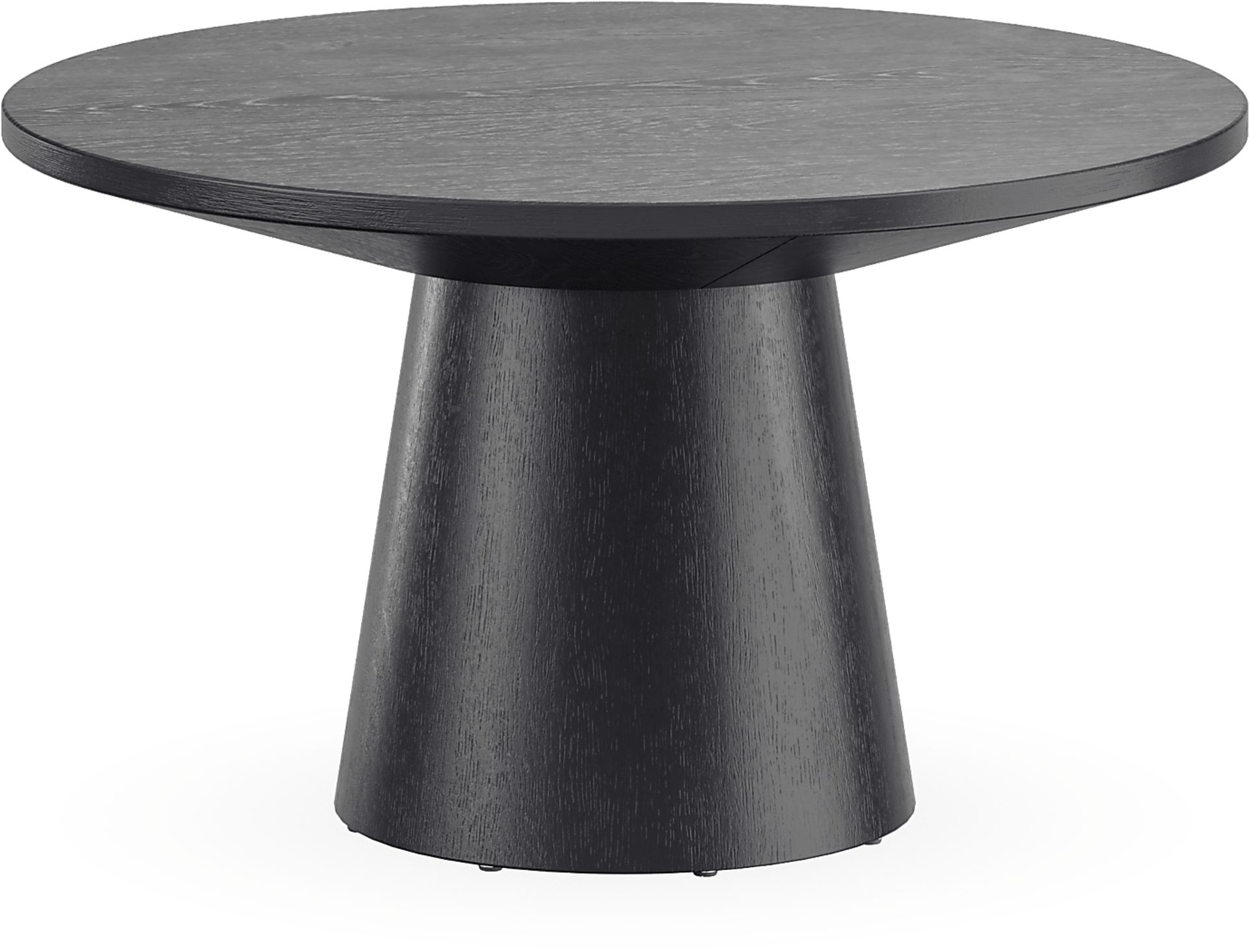 You've got a reservation for the hottest lounge in town with the Kendall cocktail table, where style meets sophistication in every detail. This 29" round table features a contemporary tabletop perched on a striking flared pedestal base. Oak veneers in a black finish enhance the look with rich woodgrain throughout. Customer assembly required.
