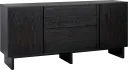 Our care guide recommends regular dusting with a soft, dry cloth to prevent debris from settling into the woodgrain. For spills, use a damp cloth with mild soap and water, immediately following with a dry cloth to prevent moisture damage. To protect the deep black finish, avoid using harsh chemicals or abrasive cleaners that can dull the luster of the oak veneers over time.