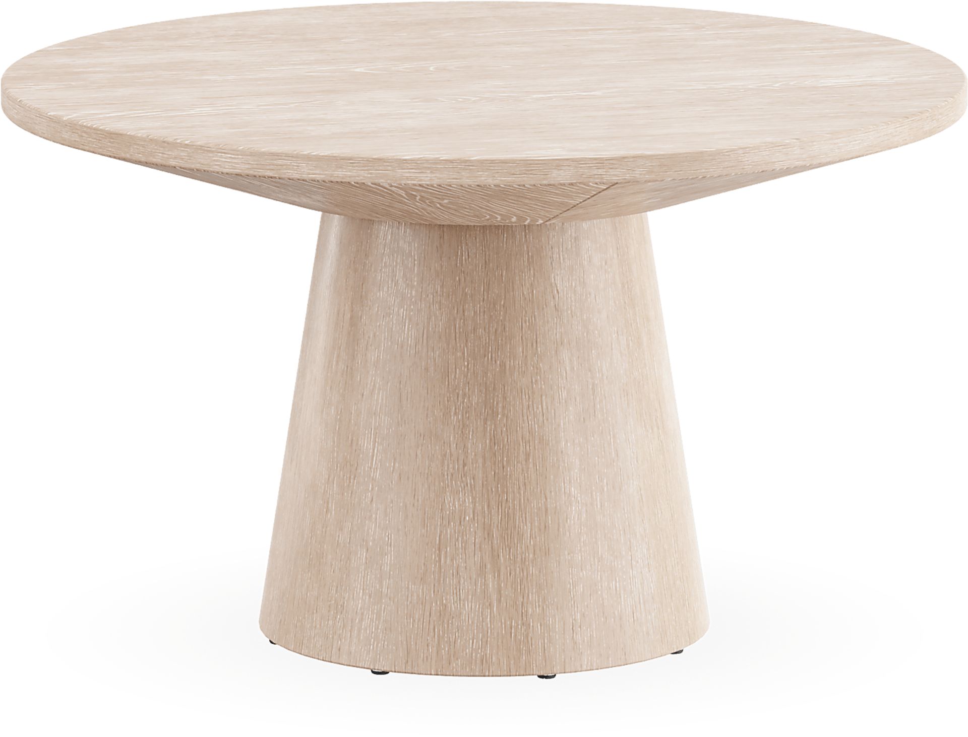 You've got a reservation for the hottest lounge in town with the Kendall cocktail table, where style meets sophistication in every detail. This 29" round table features a contemporary tabletop perched on a striking flared pedestal base. Oak veneers in a natural finish enhance the look with rich woodgrain throughout. Customer assembly required.