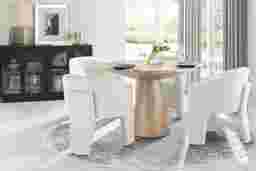 You've got a reservation for the hottest dining experience in town, and the Kendall collection is serving it family-style. This 48" round table features a contemporary tabletop perched on a striking flared pedestal base. Oak veneers in a natural finish enhance the look with rich woodgrain throughout.