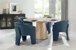 Kendall Natural 5 Pc 59" Round Dining Room With Blue Arm Chairs