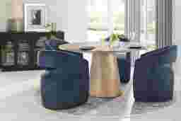 Kendall Natural 5 Pc 59" Round Dining Room with Navy Cascade Park Arm Chairs