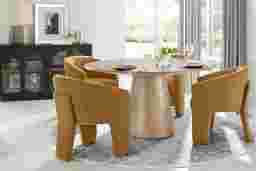 You've got a reservation for the hottest dining experience in town, and the Kendall collection is serving it family-style. This 59" round table features a contemporary tabletop perched on a striking flared pedestal base. Oak veneers in a natural finish enhance the look with rich woodgrain throughout.