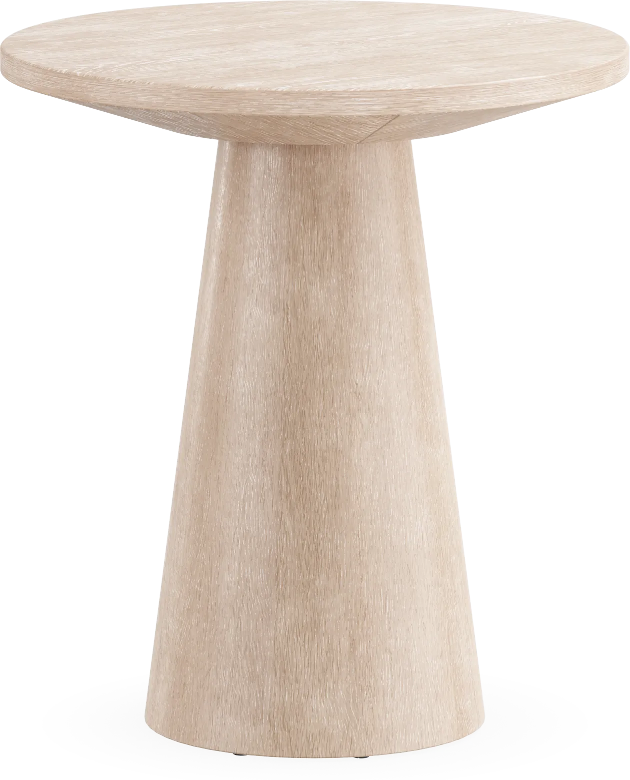 The flared pedestal base and light wood finish make this a versatile piece for transitional, modern organic, or Scandinavian-inspired decors. Its clean lines and architectural base allow it to serve as a sophisticated accent that pairs effortlessly with neutral color palettes, while the natural oak finish adds a layer of warmth and texture to the room.