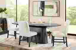 You've got a reservation for the hottest dining experience in town, and the Kendall side chair is serving it family-style. This seat with tapered wood legs in a black finish showcases channeling details stitched into white upholstery for a crisp, tailored look.