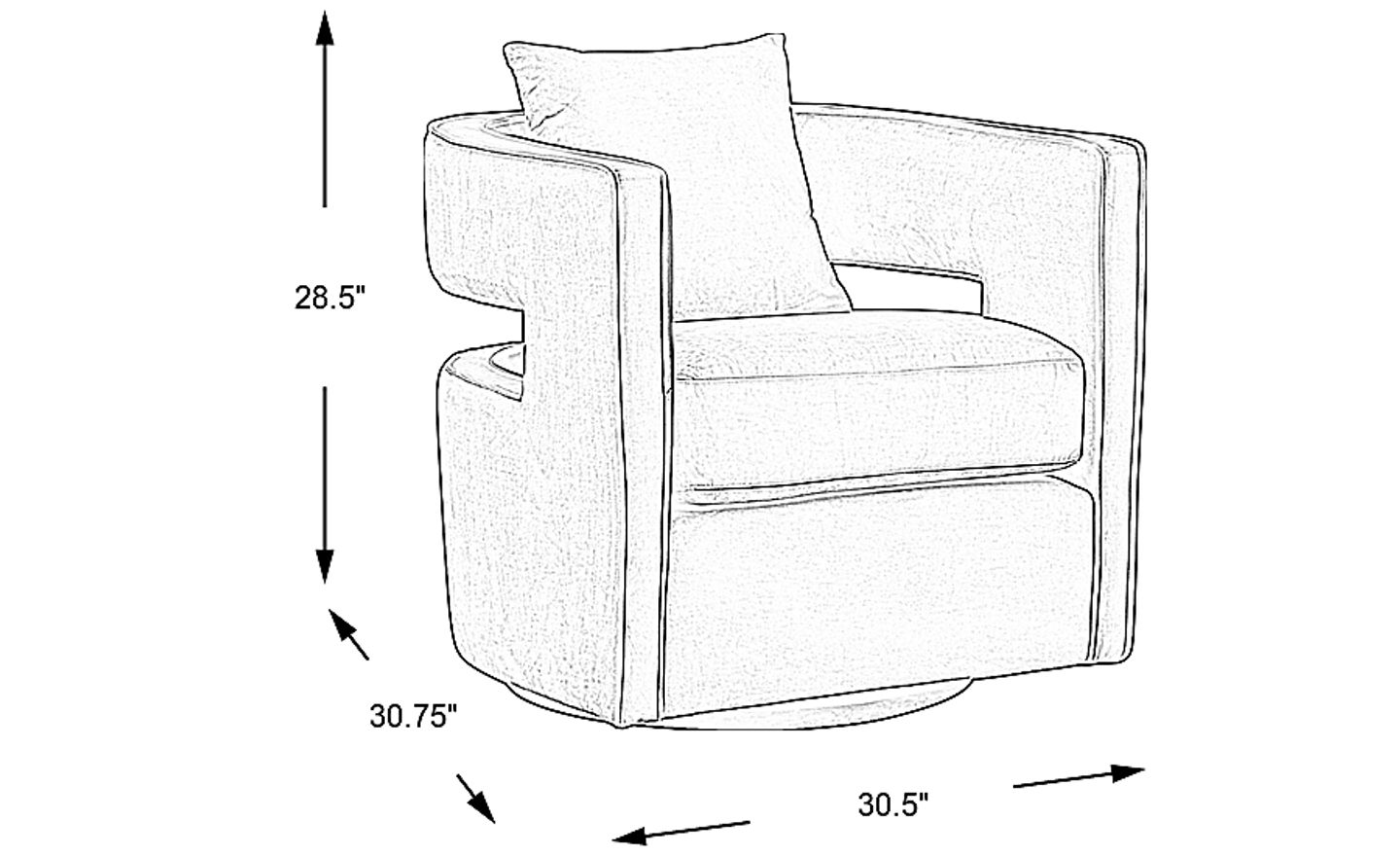 Take sophisticated style for a spin with the chic Kennedy swivel chair. Upholstered in soft velvet gray fabric, this contemporary chair features 360 degree swivel capabilities. Rounded track arms with cutout detailing offer a high end look that elevates any room. 100% Polyester.
