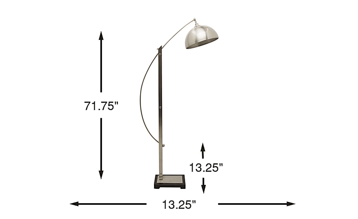 Sleek style and functionality combine beautifully on the Kenner floor lamp. This chic lamp features a heavy metal base finished in a plated brushed nicked with a satin black foot. Using the arm on the side, the shade can be adjusted in height; the shade can also be pivoted up and down to find just the right position for reading or other tasks. Operated by an on/off foot switch, the lamp accommodates a 150 watt maximum bulb (not included).