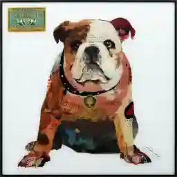 Add a vintage touch with the Kenny's Pet artwork and incorporate its intricate details into your interior decor. This piece displays a colorful dog on printed glass with anodized aluminum black frame.