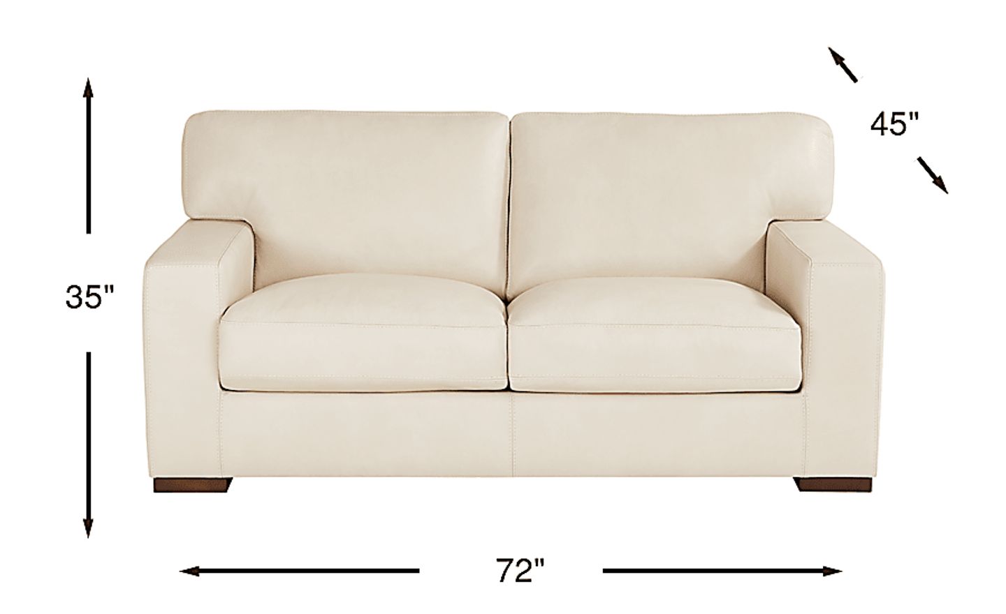 Durability is woven into the tailored details, from the sturdy block legs in a warm brown finish to the reinforced upholstery. This loveseat features welted seams and detailed top stitching, which provide extra structural integrity at high-stress points. These craftsmanship elements not only enhance the sharp, contemporary aesthetic but also ensure the leather remains secure and resistant to stretching or fraying over time.
