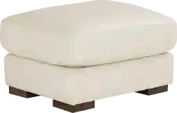 With a rich, engrossing character like the pages of a timeless novel, the Kensington ottoman's enduring appeal weaves together an inviting narrative of crisp lines, supple texture, and luxurious comfort. Contemporary in style, this piece is upholstered in top grain leather in an oyster cream hue and features a box seat cushion and base for a sharp, tailored silhouette. The cushion features a plush custom blend of feathers, fiber and down surrounding a supportive foam core for comfort that’s soft yet structured. Its impeccable craftsmanship is enhanced with detailed top stitching and welted seams while block legs in a warm brown finish add a perfect final touch. Upholstery: 100% Top grain leather. Leather is a durable, low maintenance product, however, general regular maintenance is necessary. To keep your leather clean, vacuum it regularly, removing any dust, and clean it with water and a mild non-detergent soap.