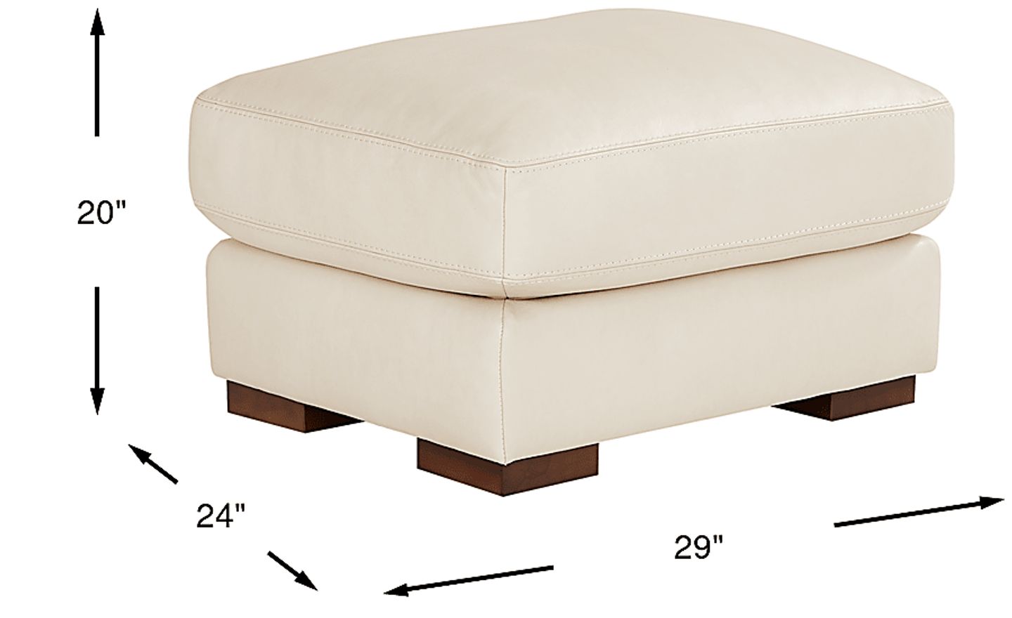 With a rich, engrossing character like the pages of a timeless novel, the Kensington ottoman's enduring appeal weaves together an inviting narrative of crisp lines, supple texture, and luxurious comfort. Contemporary in style, this piece is upholstered in top grain leather in an oyster cream hue and features a box seat cushion and base for a sharp, tailored silhouette. The cushion features a plush custom blend of feathers, fiber and down surrounding a supportive foam core for comfort that’s soft yet structured. Its impeccable craftsmanship is enhanced with detailed top stitching and welted seams while block legs in a warm brown finish add a perfect final touch. Upholstery: 100% Top grain leather. Leather is a durable, low maintenance product, however, general regular maintenance is necessary. To keep your leather clean, vacuum it regularly, removing any dust, and clean it with water and a mild non-detergent soap.