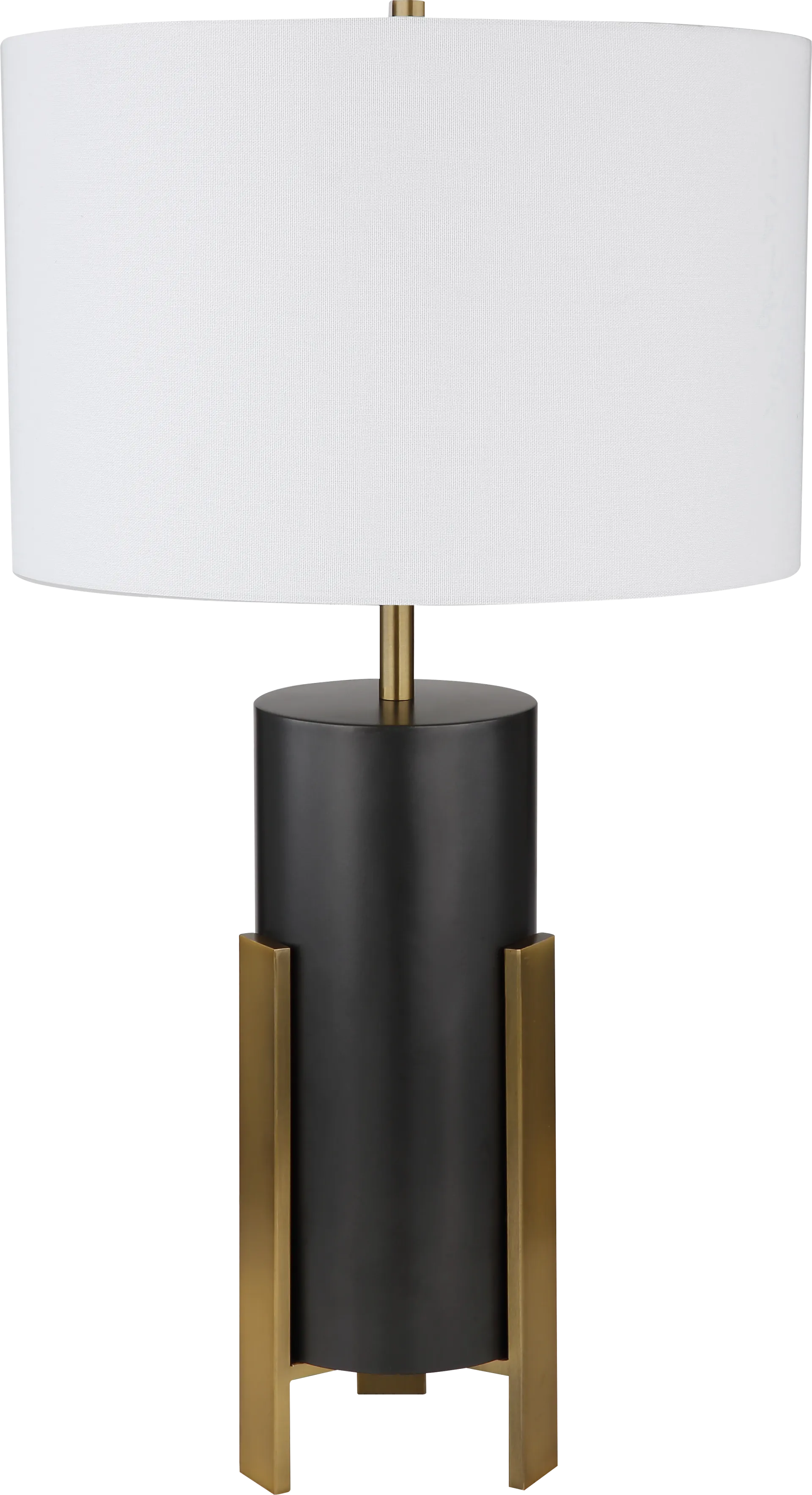 Showcasing modern style, the Kerens Lane table lamp has a minimalist design that incorporates an interesting combination of curves and edges. Its sturdy steel base, rendered in black, boasts bronze-finished accents that lift up the rest of the body. This lamp accommodates a maximum 100-watt standard bulb and includes a convenient three-way switch.