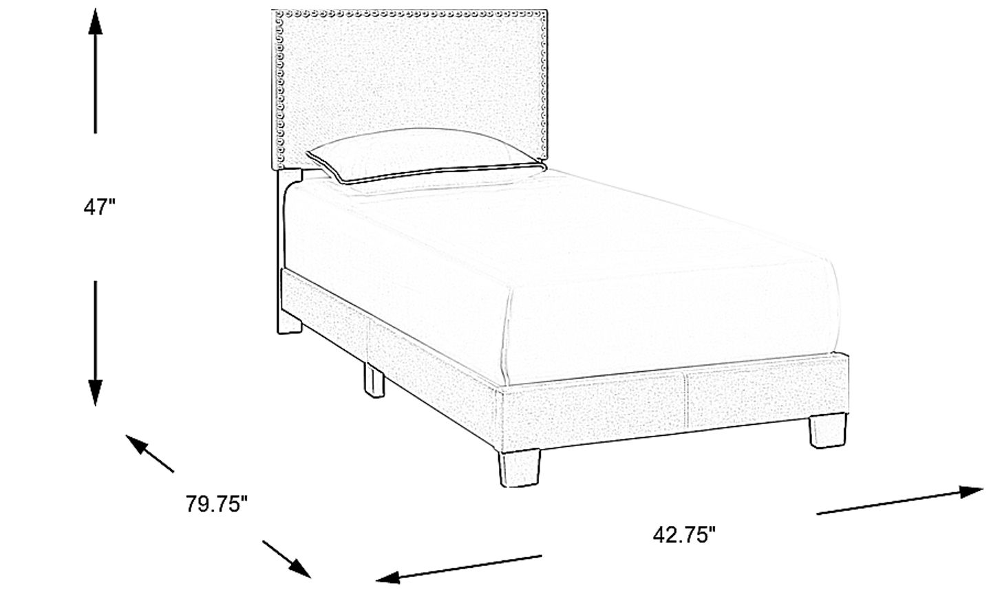 A clean and tailored look is easy to achieve with the Kernite twin nail trim bed in fog gray. This bed creates a simple silhouette with a rectangular headboard trimmed accented with brushed silver nail heads. Foundation required. Mattress and foundation sold separately. Customer assembly is required.