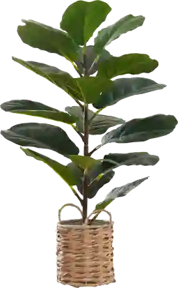 Enhance the decor of your home or office with this impressive Ketembilla 28 tall artificial fiddle tree plant. Boasting 18 leaves that are adjustable with real touch feel along the trunk and fitted into an 8 faux beige woven basket, this exotic artificial fiddle tree is both decorative and durable with no maintenance and no watering required Crafted with high-quality materials, this environmentally friendly fake fiddle tree gives a room a certain warmth. An ideal solution when you want to add a touch of greenery to your indoor space without any time consuming care.