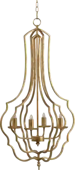 Brighten your interior with the exceptionally graceful Kewanee View chandelier. The sculptural metal frame makes a dramatic statement with its curves, angles, and antique gold finish. Outfit with four candelabra-style bulbs and hang anywhere that could use an elegant focal point. Professional installation by an electrician is recommended.