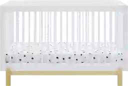 With a streamlined footprint of 54.25"W x 31"D, this crib is an excellent choice for smaller nurseries or urban living where space is at a premium. Its modern aesthetic, characterized by thin round spindles and a raised natural wood base, creates a light, airy look that helps a smaller room feel more open. Despite its compact exterior, it accommodates a standard-sized crib mattress, ensuring a familiar and comfortable sleep surface for your baby.