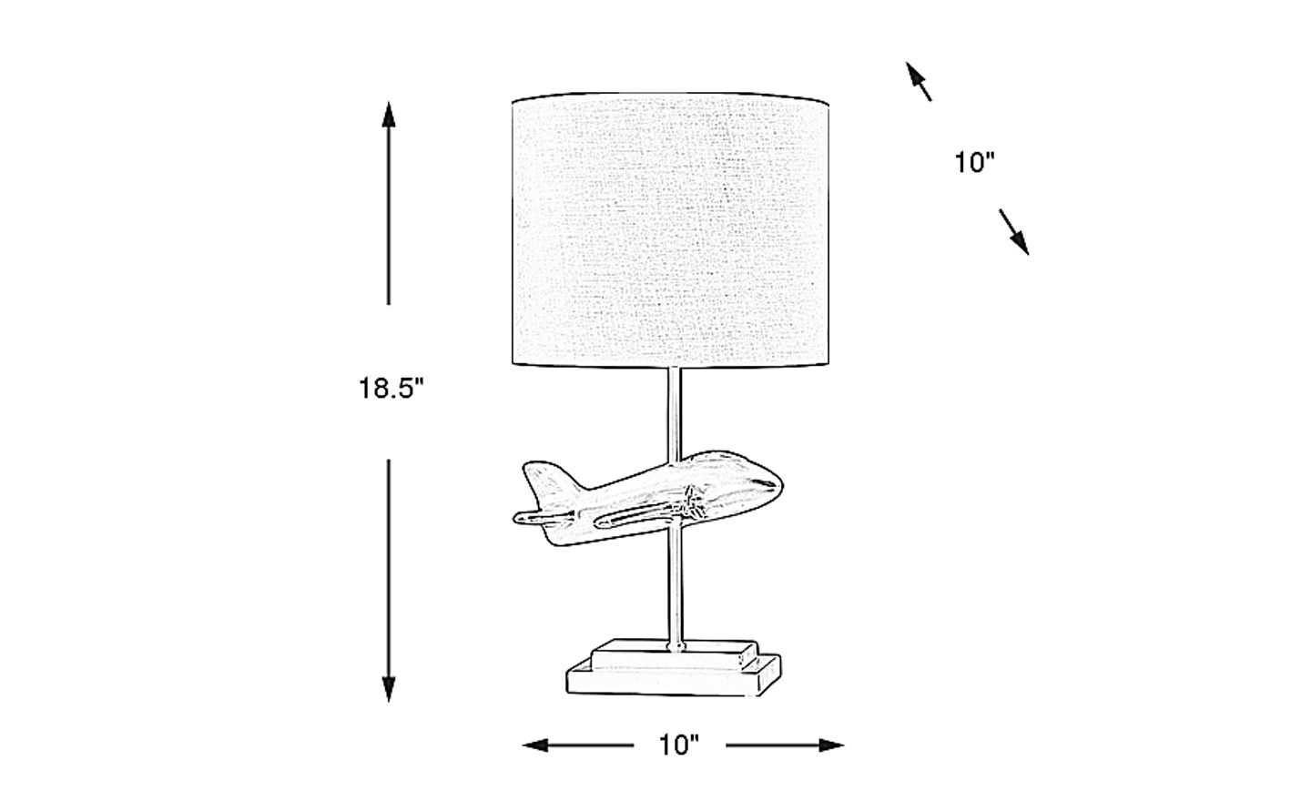 Soar into style with the Airplanes Decor Table Lamp. Featuring a sleek, silver-finished airplane base crafted from durable resin, this lamp brings the excitement of flight right into your child's room. The bold black drum shade adds a sharp contrast, creating a modern and dynamic look that pairs perfectly with the adventurous spirit of the airplane design. Ideal for bedrooms, playrooms, or any space with an aviation or travel theme, this lamp provides just the right amount of light for reading, relaxing, or dreaming of far-off destinations. It's the perfect combination of playful design and functional lighting!