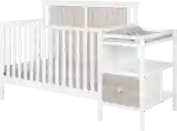 The Alemeda crib and changer combo is a great space saver and a nod of style. With classic lines and contemporary dual tone finishes demand the attention in the room. The crib with attached changing table has two spacious shelves for storing all of the necessities. The crib and changer combo offers three position mattress support for ease of use and solid wood construction for optimum safety. Customer assembly is required.
