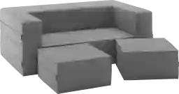 This set is an excellent choice for space-conscious living. With a compact base footprint of 37.5"W x 61"D, it fits neatly into smaller rooms or urban apartments. Its unique modular design allows the ottomans to be stacked inside to form a gaming table or seating pad, effectively providing multiple pieces of furniture within the footprint of a single loveseat.