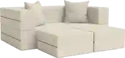 Completely unique, the Alfy loveseat set features a customizable design to enhance any room. With its multifunctional design, this loveseat creates the perfect layout for your space with the ability to customize it quickly and easily. Relax with a friend in the comfortable two-person loveseat with ottomans, or stack the ottomans inside for a large gaming table or seating pad. Even better, fold it out completely and get some sleep on the comfy Queen-size mattress. The removable covers feature stylish black zippers and are removable and machine-washable. The Alfy will complement your existing decor beautifully. Care Instructions for covers machine wash with cold water and tumble dry on low heat. Foam is approved under the CertiPUR-US program, which assures that the foam is made without ozone depletes, flame retardants, heavy metals, or formaldehydes. Certification also guarantees low emissions for improved indoor air quality. Customer assembly required.