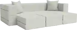 This set includes four pieces: one main sleeper sofa and three matching ottomans. This modularity allows for several authoritative setups to fit your lifestyle. You can use it as a traditional three-seat sofa, stack the ottomans inside to create a large bench or game table, or place an ottoman in the middle to serve as a built-in workstation or side table while seated.