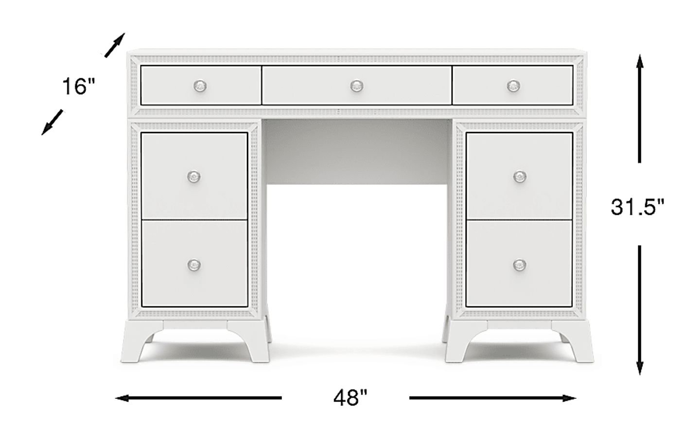 A star-worthy style for your kid's sleep space is here with the bold and beautiful Alyssa bedroom collection! Rising and shining comes with a sparkle thanks to high-quality acrylic crystal trim that adds wow-factor to this desk. The pedestal drawers feature French dovetail joinery in the front and English dovetail joints in the back for strength and durability. Full extension, side-mounted, ball-bearing glides ensure each drawer opens and closes with ease. Round chrome hardware adds a touch more sparkle to tie the whole look together. Perfect for powering up some of your favorite electronic devices, power is always close at hand with the desk's USB ports and AC outlets.