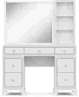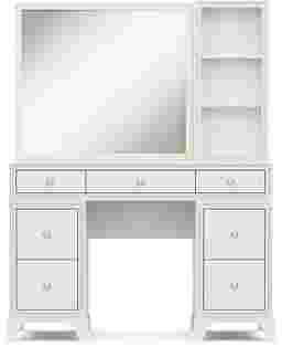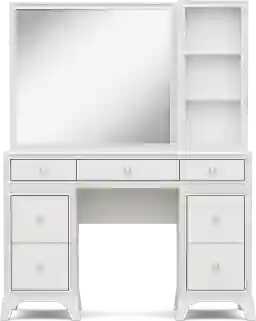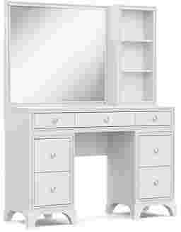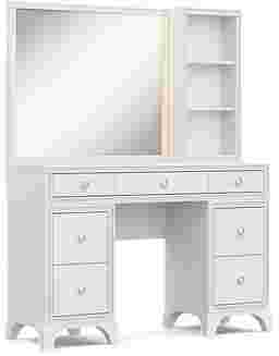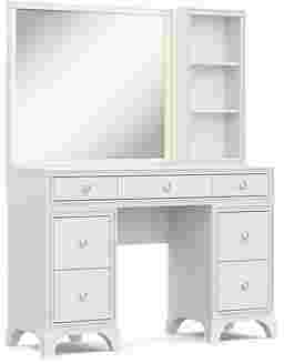 A star-worthy style for your kid's sleep space is here with the bold and beautiful Alyssa bedroom collection! Rising and shining comes with a sparkle thanks to high-quality acrylic crystal trim that adds wow-factor to this desk. The pedestal drawers feature French dovetail joinery in the front and English dovetail joints in the back for strength and durability. Full extension, side-mounted, ball-bearing glides ensure each drawer opens and closes with ease. Round chrome hardware adds a touch more sparkle to tie the whole look together. Perfect for powering up some of your favorite electronic devices, power is always close at hand with the vanity's USB ports and AC outlets. When paired with the small sparkle mirror's LED-lights, it casts a radiant glow that gives the entire setup a mesmerizing halo effect. The glimmering frame features a 4-way, finger-sensitive touch light system that puts the perfect glow at your fingertips. The matching hutch offers convenient shelving for skincare products, beauty tools and more.