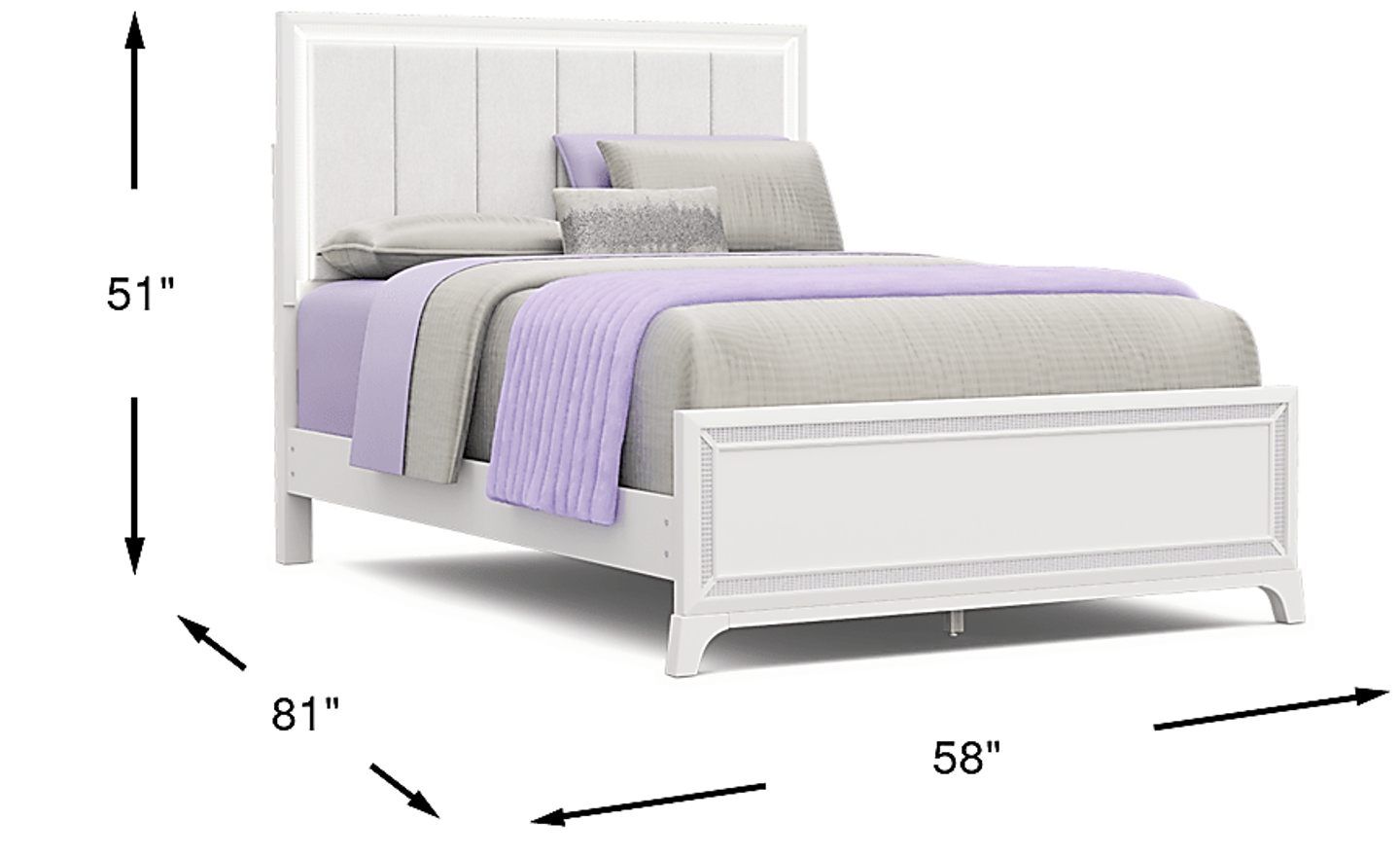 A star-worthy style for your kid's sleep space is here with the bold and beautiful Alyssa bedroom collection! Rising and shining comes with a sparkle thanks to high-quality acrylic crystal embellishments that add wow-factor to the piece's bright white finish. Featuring an upholstered headboard, this full-size bed comes complete with a lighted headboard that's LED illumination creates the perfect glow for reading or relaxing. Mattress and foundation (if required) sold separately.