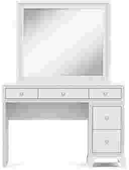 A star-worthy style for your kid's sleep space is here with the bold and beautiful Alyssa bedroom collection! Rising and shining comes with a sparkle thanks to high-quality acrylic crystal trim that adds wow-factor to this desk. The pedestal drawers feature French dovetail joinery in the front and English dovetail joints in the back for strength and durability. Full extension, side-mounted, ball-bearing glides ensure each drawer opens and closes with ease. Round chrome hardware adds a touch more sparkle to tie the whole look together. Perfect for powering up some of your favorite electronic devices, power is always close at hand with the vanity's USB ports and AC outlets. When paired with the large sparkle mirror's LED-lights, it casts a radiant glow that gives the entire setup a mesmerizing halo effect. The glimmering frame features a 4-way, finger-sensitive touch light system that puts the perfect glow at your fingertips.