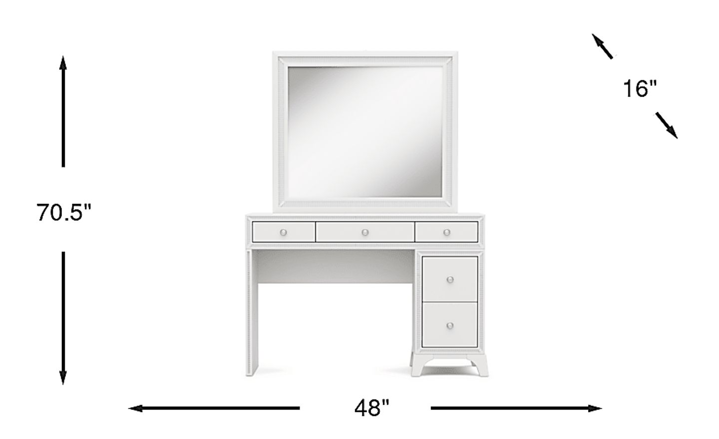 A star-worthy style for your kid's sleep space is here with the bold and beautiful Alyssa bedroom collection! Rising and shining comes with a sparkle thanks to high-quality acrylic crystal trim that adds wow-factor to this desk. The pedestal drawers feature French dovetail joinery in the front and English dovetail joints in the back for strength and durability. Full extension, side-mounted, ball-bearing glides ensure each drawer opens and closes with ease. Round chrome hardware adds a touch more sparkle to tie the whole look together. Perfect for powering up some of your favorite electronic devices, power is always close at hand with the vanity's USB ports and AC outlets. When paired with the large sparkle mirror's LED-lights, it casts a radiant glow that gives the entire setup a mesmerizing halo effect. The glimmering frame features a 4-way, finger-sensitive touch light system that puts the perfect glow at your fingertips.
