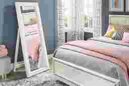 A star-worthy style for your kid's sleep space is here with the bold and beautiful Alyssa bedroom collection! Perfect for everything from getting ready in the morning to snapping a selfie, you're in for picture-perfect lighting with the floor mirror's beveled glass encased in a frame with high-quality acrylic crystal trim. The glimmering frame features an LED lighting system to deliver brilliant illumination with a simple on/off switch, giving every moment full-length glamour.