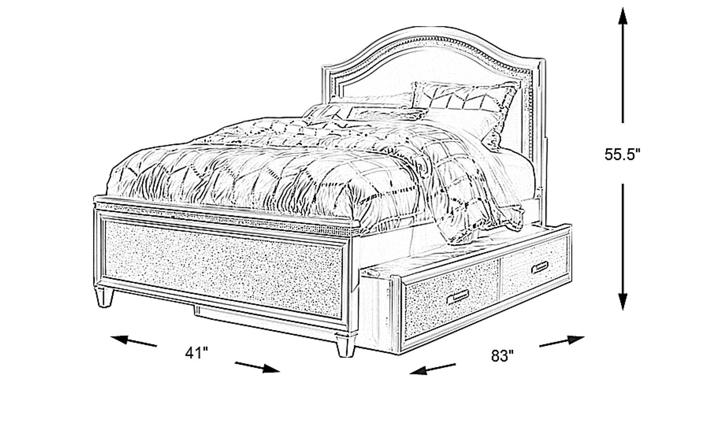 Make a statement with the glamourous Angelique panel bed. Crafted of wood solids in a white finish, this stunning bed has a few dazzling features. Inlaid acrylic crystal detailing adds a touch of glam but the real showstopper comes from an acrylic crystal trim along the top of the headboard and footboard. The curved headboard adds some depth to this bed, a perfect piece for kids and teens alike. Mattress and foundation (if required) sold separately. Bed shown is full size.