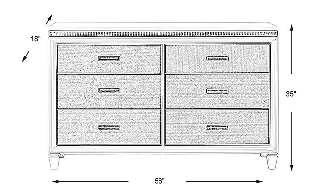 The Angelique dresser is a great addition to your fashionable child or teen. This piece features a stunning white finish and a reflective mirror trim detail with acrylic crystals that truly set this piece apart. Brushed nickel hardware on the six drawers that all feature more inlaid acrylic crystals to up the glam appearance of this dresser.