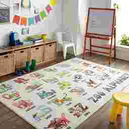 Learning the alphabet has never been more fun with our Animal Alphabet rug. Featuring adorable zoo animals and colorful letters, it's the perfect addition to any playroom or classroom. Soft and durable, it's ideal for playtime and learning; watch your child discover the joys of the alphabet with their new animal friends. The Animal Alphabet rug is designed with innovative Precision Dye Injected technology, a plush base tufted with exclusive eco-friendly EverStrand fiber, a premium recycled polyester yarn. EverStrand yarn is easy on the eyes and created from recycled post-consumer plastic water bottles. While EverStrand is renowned for its sensuously soft touch, this silky fiber also offers superior strength stain resistance, dependable durability and an illustrious color clarity. Refreshing and radiant colors come to life through a subtle light catching sheen that is inherent to the luxurious yarn.