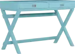 Make homework fun with this vibrant and stylish Aranya desk. Finished in bright blue with silver color hardware,, this desk will add color and life to any space. Along with its fun pop of color the X-framed legs, it helps keep the space sturdy. The Aranya features two drawers that provide ample space for supplies. Customer assembly is required.