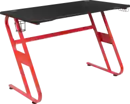 Add personality to your gaming setup with the ergonomic Astix gaming desk with sleek red frame. For excitable players, this game station has a cup holder to prevent accidental spills. The multi-function workstation powers you through game sessions and work demands on a sturdy z-shape frame. Reduce clutter on the work surface by feeding cords through the two provided grommets. Always know where your headset is by placing on the headset hook in between games. The actual top size measures 45 In while the width with included cup holder and headphone station measures 51.5 In. Customer assembly is required.