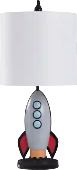 Take your child's room to new heights with the Astronauts Decor Space Shuttle Table Lamp! Featuring a fun and futuristic space shuttle base crafted from durable resin, this lamp is perfect for young astronauts and dreamers. The gray finish gives it a sleek, modern look, while the white drum shade softens the light, creating a cozy and inspiring atmosphere for bedtime stories or playtime. Ideal for kids who are fascinated by space exploration, this lamp brings a sense of adventure to any bedroom, playroom, or study nook. It's the perfect combination of creativity and functionality, making it a standout piece in any young explorer's space!