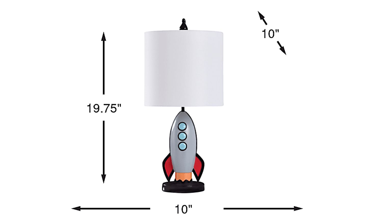 Take your child's room to new heights with the Astronauts Decor Space Shuttle Table Lamp! Featuring a fun and futuristic space shuttle base crafted from durable resin, this lamp is perfect for young astronauts and dreamers. The gray finish gives it a sleek, modern look, while the white drum shade softens the light, creating a cozy and inspiring atmosphere for bedtime stories or playtime. Ideal for kids who are fascinated by space exploration, this lamp brings a sense of adventure to any bedroom, playroom, or study nook. It's the perfect combination of creativity and functionality, making it a standout piece in any young explorer's space!