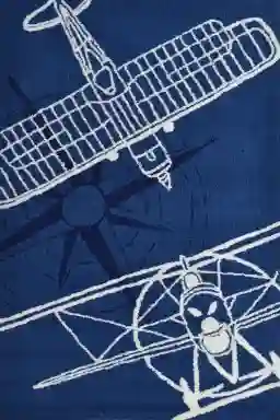 While the airplane "sketch" pattern adds a whimsical touch, the navy and white color palette is a timeless combination that fits seamlessly into traditional or classic decor styles. You can create a cohesive look by pulling the navy blue from the rug into other room accents, such as throw pillows, curtains, or a matching bean bag chair, to tie the theme together without over-stimulating the space.