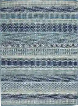 Rich and lush color draws you in to the plush beauty of the Azurine rug. Woven of polypropylene fibers on state-of-the-art powerlooms, this rug combines thick, comfortable pile with an easy-care approach. Advanced overdye techniques create an exciting patina effect. Gorgeous indigo blues add depth to the lively linear patterns.