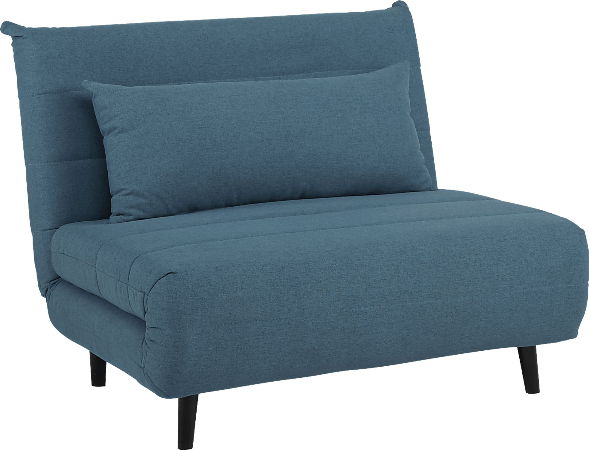 A stylish seating choice, the Baris sleeper chair is an exceptionally versatile piece. A blue color and tapered wooden legs give any child or teen's room a trendy dash of contemporary style. Filled with high-density foam supported by a metal frame, it's easy to simply unfold the chair to create a sleep surface for an overnight guest. An included pillow can be used to support the lower back when in the chair position, or as a pillow when it's unfolded as a bed. Upholstery: 100% Polyester.