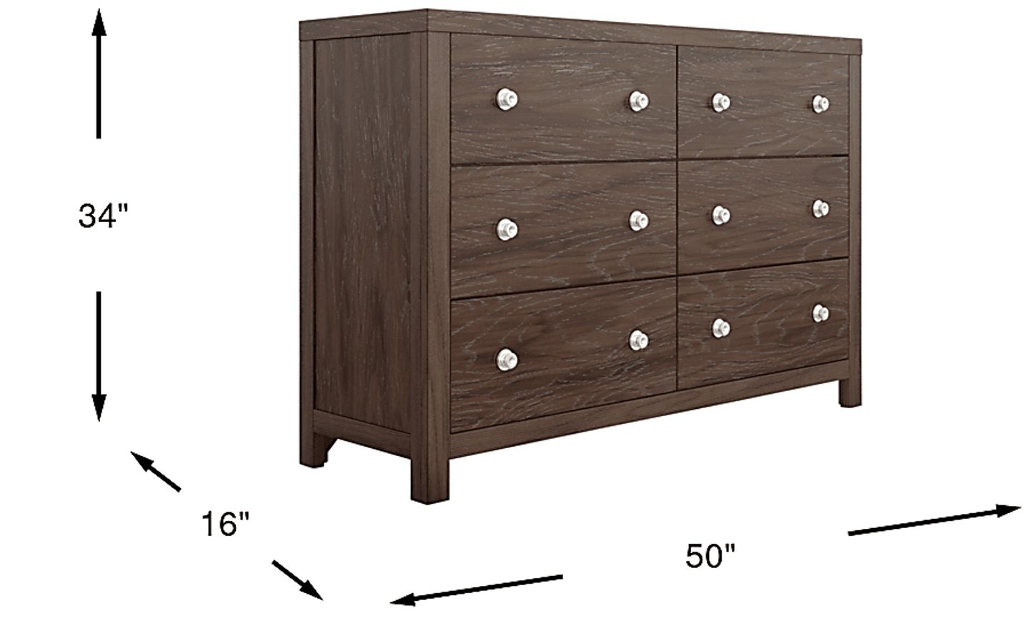 Help organize and store your child's belongings with the stylish and practical Barringer Place dresser. Wood solids in a beautiful brown cherry finish features cerusing detail to add a unique appearance. Six drawers with chrome finished hardware provide ample storage.