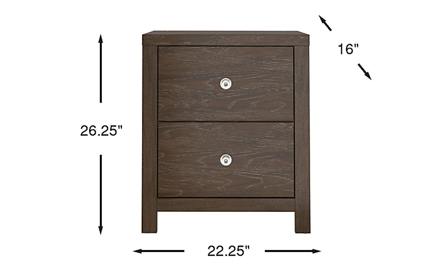 Keep books and other items close at hand with the stylish Barringer Place nightstand. A cerused brown cherry finish helps this piece stand apart. Extra storage is handy thanks to two drawers with chrome finished pulls.