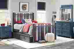 It's a grand slam good time for your sports crazy kid with the Batter Up bed! Wooden baseball bats assembled in a multitone painted finish are fixed to the iron ore frame of the full bed. These colors enable the bed to coordinate with a variety of accompanying pieces. The four finials feature leather baseballs with red lace stitching for an authentic final detail. This bed requires a foundation for proper use. Mattress and foundation sold separately.